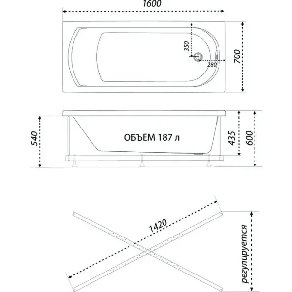 Акриловая ванна 1ACReal Дюна Щ0000046113 обрезанная 160x70 см белый купить