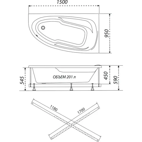 Акриловая ванна 1ACReal Мадрид Щ0000045643 левая обрезанная 150x95 см белый купить