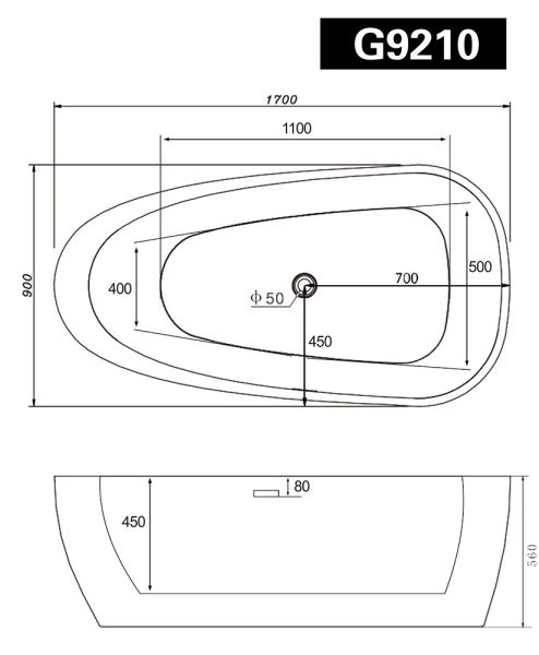 Акриловая ванна ABBER AB9210 170x90x56 купить