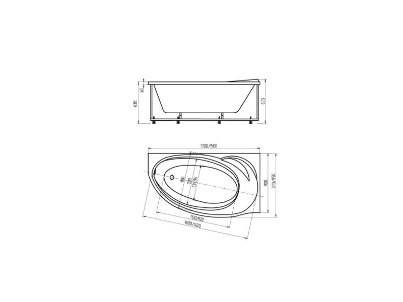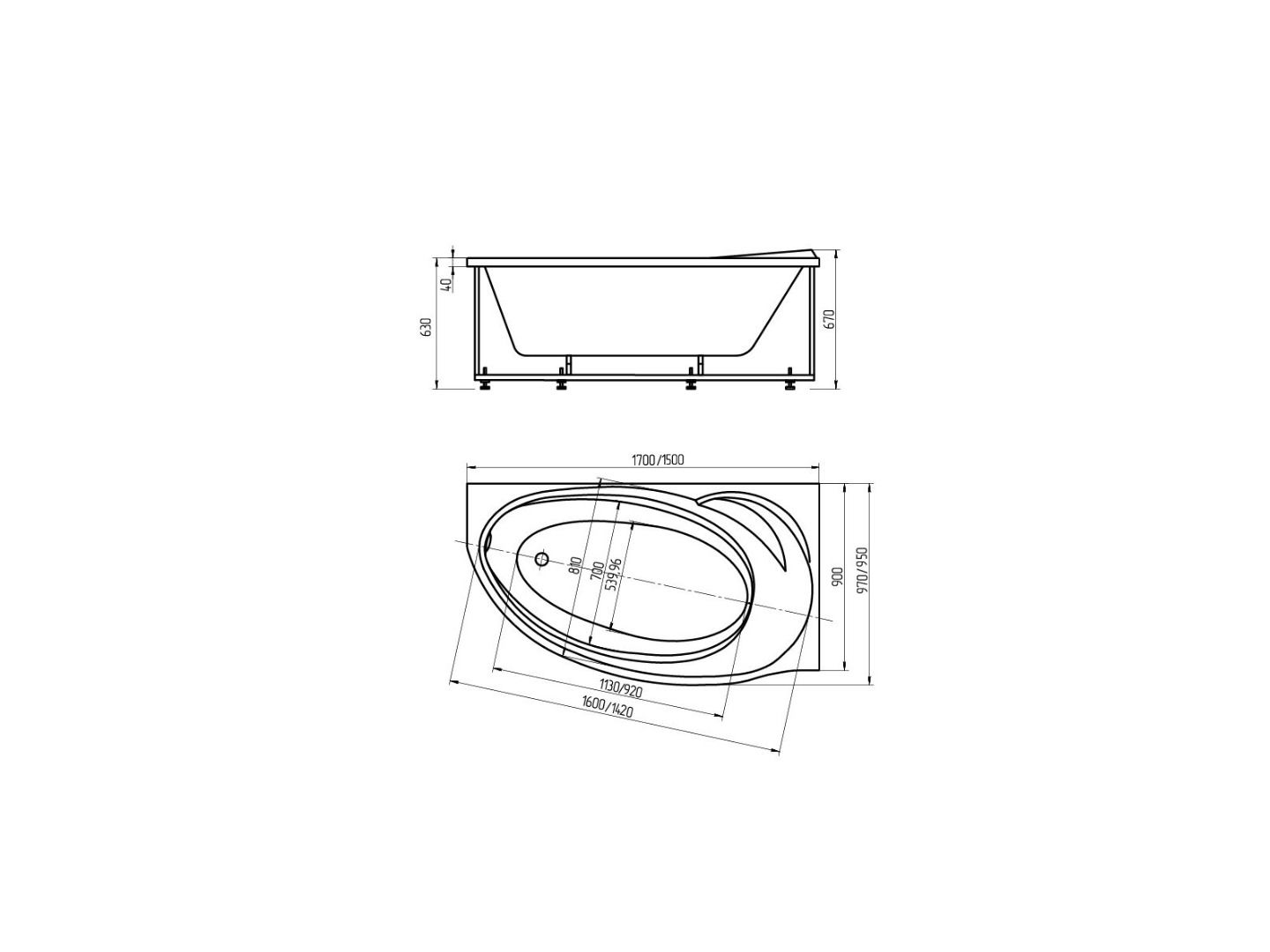 Длина, см:160Ширина, см:97Высота, см:67Глубина, см:47Форма:АсимметричнаяВнутр. размер дна, см:107Внутр. размер ванны, см:150Внутренняя ширина, см:81Макс. емкость, л:210Вес, кг:43