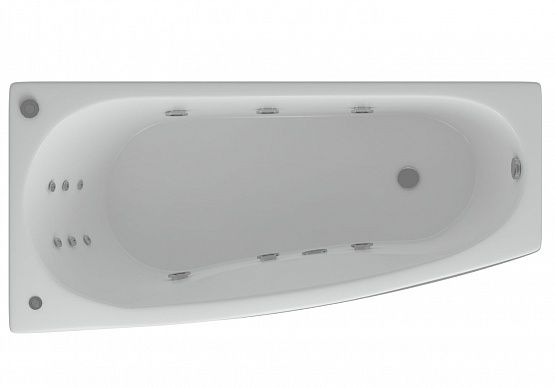 Асимметричная ванна, которая при компактных размерах имеет уникальную форму. Экономит пространство ванной комнаты, не экономя на Вашем комфорте.