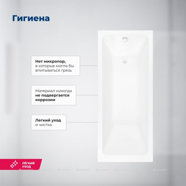 Прямоугольная ванна имеет глянцевую белоснежную поверхность, устойчивую к появлению внешних дефектов. Произведена ванна из высококачественного материала – сантехнического акрила, обладающего теплостойкими и антибактериальными свойствами. Ванна укреплена двойным составом из стекловолокна и полиэфирной смолы. В местах несущих нагрузку, имеется дополнительное укрепление в виде закладных из МДФ-плиты.