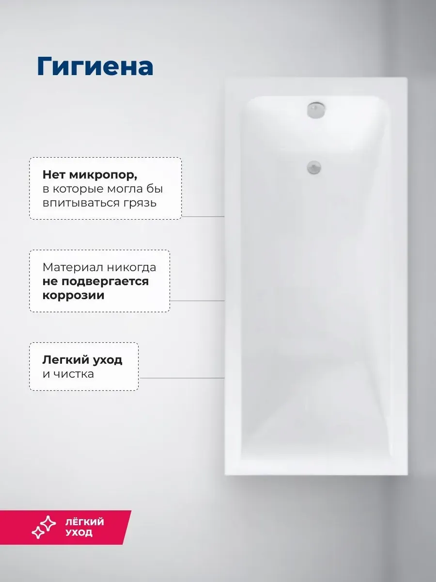 Акриловая ванна Aquanet создана с учетом растущего спроса на ванны простой прямоугольной формы в популярных размерах. Это модель с прямыми бортами и пологой спинкой, где соблюден идеальный угол для комфортного нахождения в ванне. Спинка плавно перетекает в бортик, поэтому релакс гарантирован даже без использования подголовника. Все линии ванны подчинены строгим законам эргономики. Чаша в этой ванне устроена таким образом, что для обозначенных размеров в ней достигнут максимально возможный внутренний объем, и это при комфортной глубине от слива ванны до борта. Ванна рассчитана на нагрузку свыше 300 кг, так что даже крепкий мужчина сможет без опаски находиться в ней. Двойной слой армирования обеспечивает надежность чаши, а закладные из МДФ-плит в местах наибольшей нагрузки усиливают эффект.