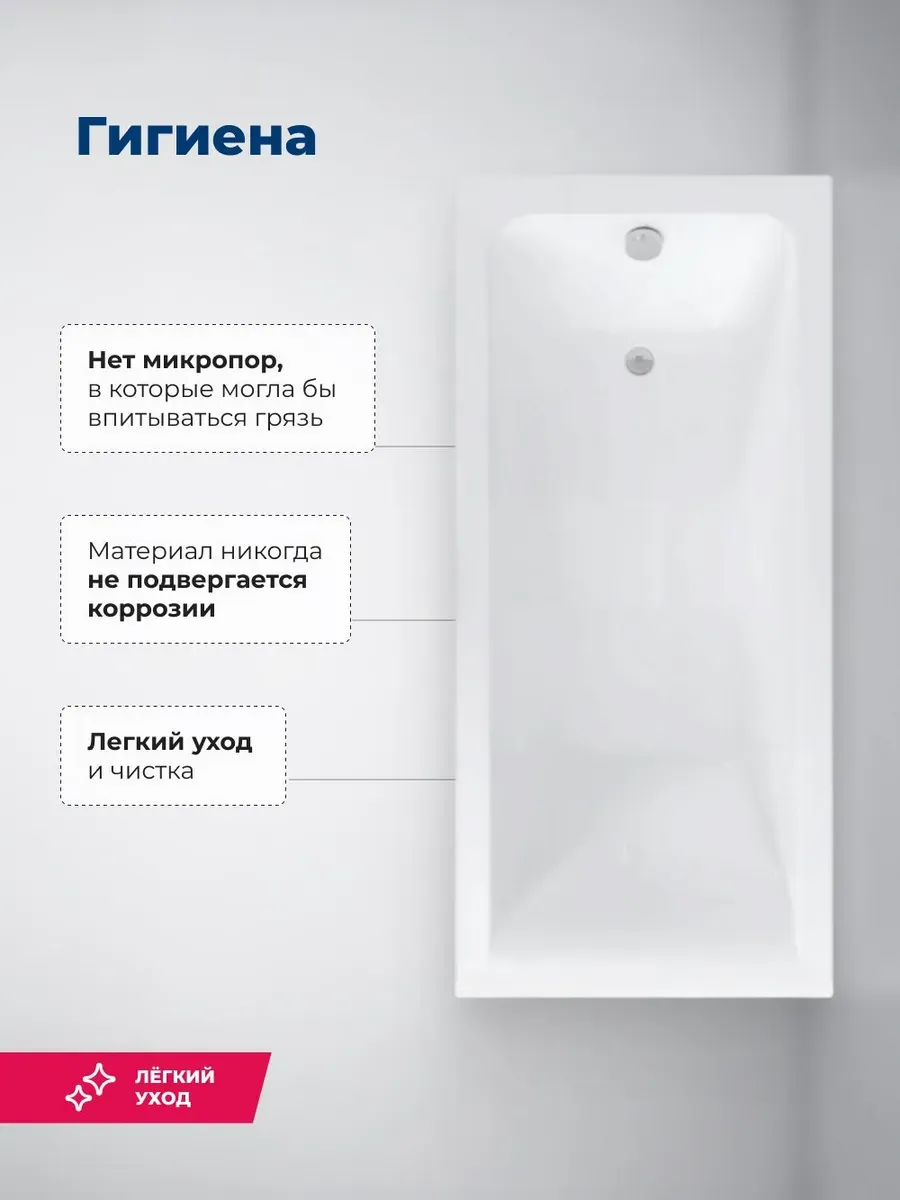 Акриловая ванна Aquanet Bright 165x70 создана с учетом растущего спроса на ванны простой прямоугольной формы в популярных размерах. Это модель с прямыми бортами и пологой спинкой, где соблюден идеальный угол для комфортного нахождения в ванне. Спинка плавно перетекает в бортик, поэтому релакс гарантирован даже без использования подголовника. Все линии ванны подчинены строгим законам эргономики. В современных условиях ширина ванны 70 см при длине 165 см - это наиболее востребованные габариты, так как прекрасно вписываются в стандартную планировку современных ванных комнат. Чаша в этой ванне устроена таким образом, что для обозначенных размеров в ней достигнут максимально возможный внутренний объем, а именно 175 литров, и это при комфортной глубине в 412 мм от слива ванны до борта. Ванна рассчитана на нагрузку свыше 300 кг, так что даже крепкий мужчина сможет без опаски находиться в ней. Двойной слой армирования обеспечивает надежность чаши, а закладные из МДФ-плит в местах наибольшей нагрузки усиливают эффект.
