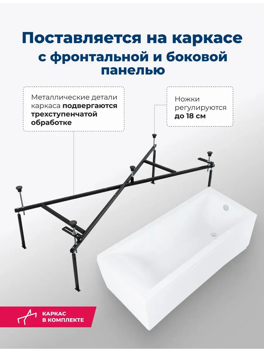 Акриловая ванна Aquanet Bright 347870 175x75 см с каркасом с боковой и фронтальной панелями купить