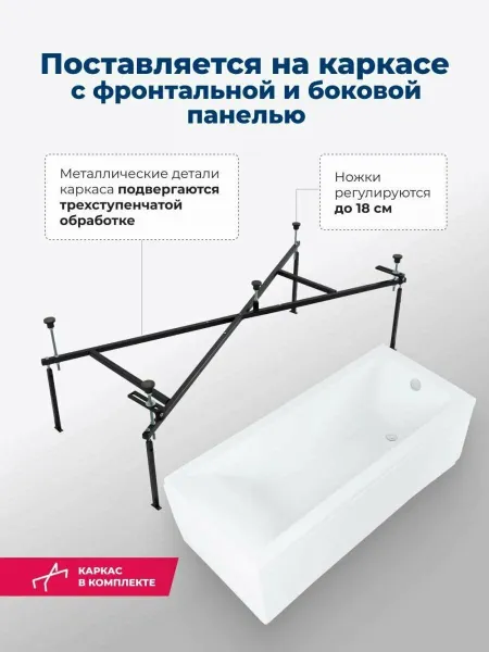 Акриловая ванна Aquanet Bright 347871 180x70 см с каркасом с фронтальной и боковой панелями