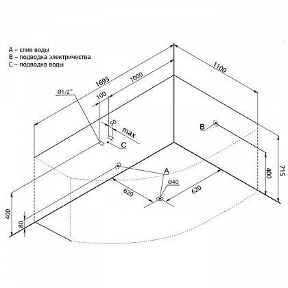- Размер: 170x110x75 см. Глубина: 56 см. Объем: 380 л.
