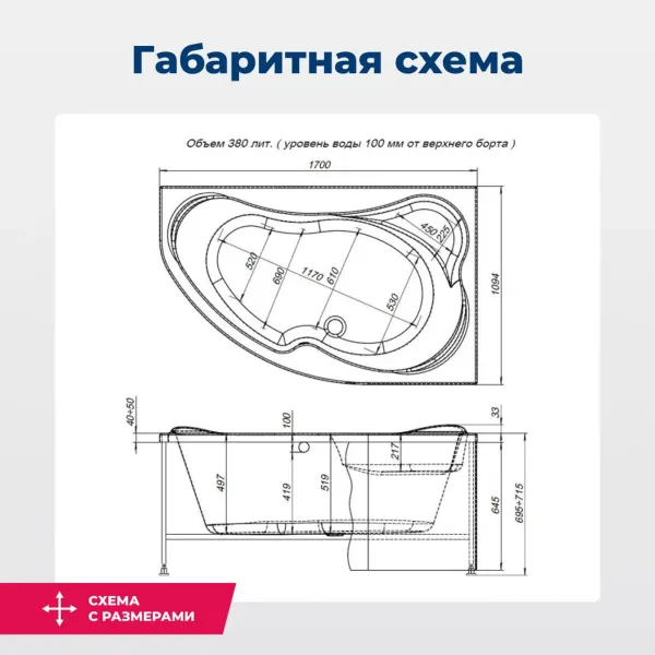 Акриловая ванна Aquanet Capri 205387 170x110 правая Характеристики: Цвет: белый. Материал: ... Подробнее