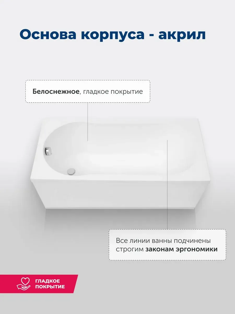 Акриловая ванна Aquanet Light 347153 150x70 см с каркасом и фронтальной панелью купить