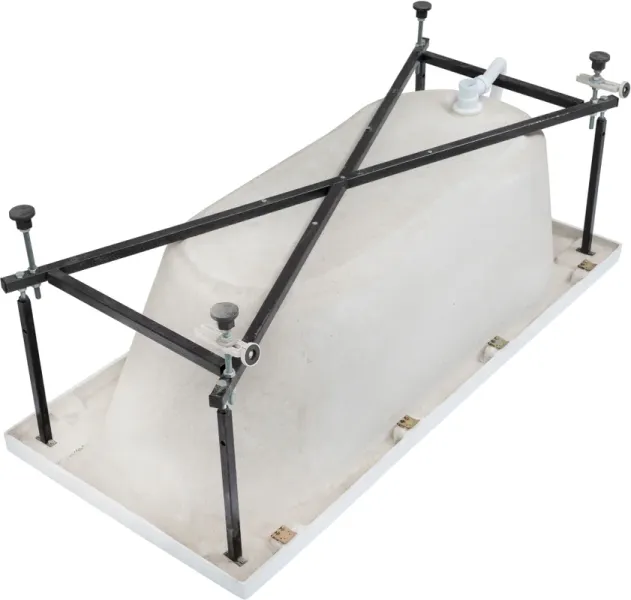 Ванна уже установлена на жесткий сварной каркас из металлического профиля. Металлические детали каркаса подвергаются трехступенчатой обработке, когда сначала профильная труба проходит абразивную зачистку на специальном станке, после чего готовые детали обрабатывают каустической содой, и, просушив, покрывают с помощью электростатического распылителя молотковой краской по металлу. Это гарантирует равномерность окрашивания и стойкость покрытия.