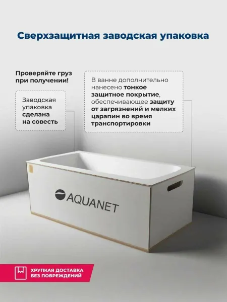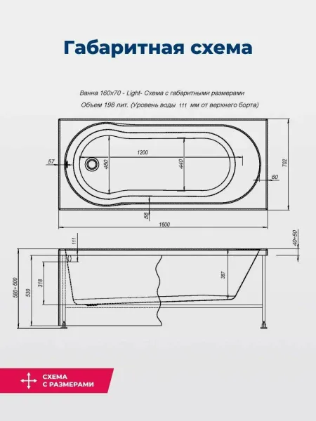 Обратите внимание, что это комплект: акриловая ванна, каркас и фронтальная панель. Акриловая ванна Aquanet Light 160x70 занимает особое место в ассортименте компании «Акванет», так как эффектно смотрится как в стандартной планировке, так и в небольшом помещении. У нее эргономичная чаша глубиной 380 мм и широкие борта. На них легко найти место для установки набортного смесителя – популярная в последнее время опция. А если установить на ванну еще и гидромассажное оборудование, аэромассаж и подсветку, то получится настоящий спа-комплекс на дому, куда войдет 198 литров воды.