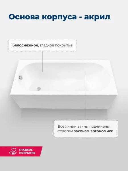 Овальная чаша со стандартным сливом дополнена расположенной под углом спинкой, переходящей в прямые широкие бортики. Выверенная до мелочей эргономика обеспечивает комфортное принятие водных процедур, позволяет держать под рукой необходимые гигиенические принадлежности. Устойчивость придает прочный металлический каркас, оптимальную высоту которого можно подобрать за счет регулируемых ножек.