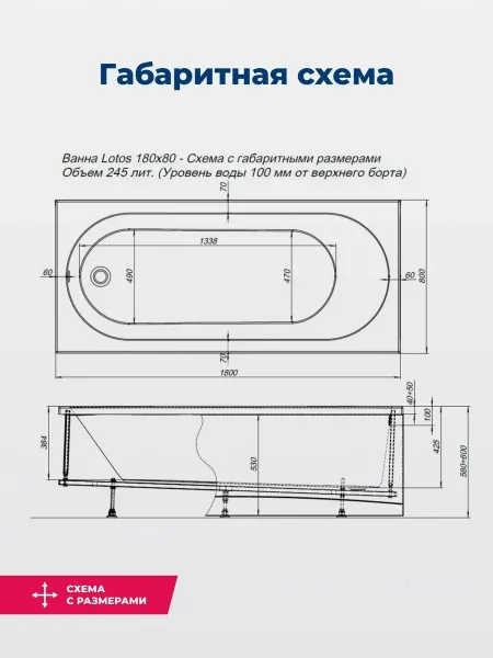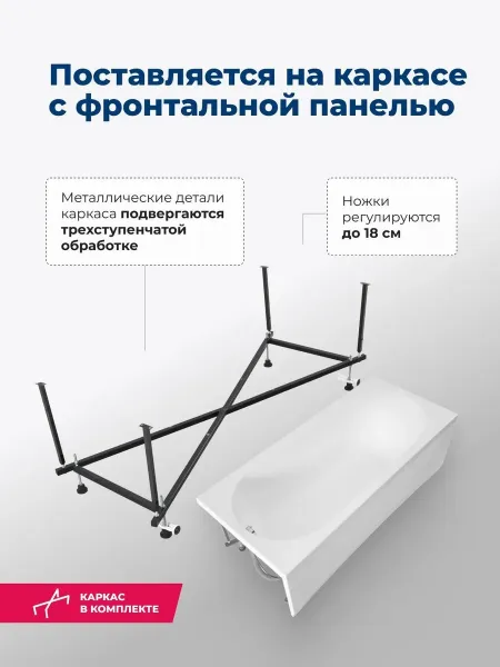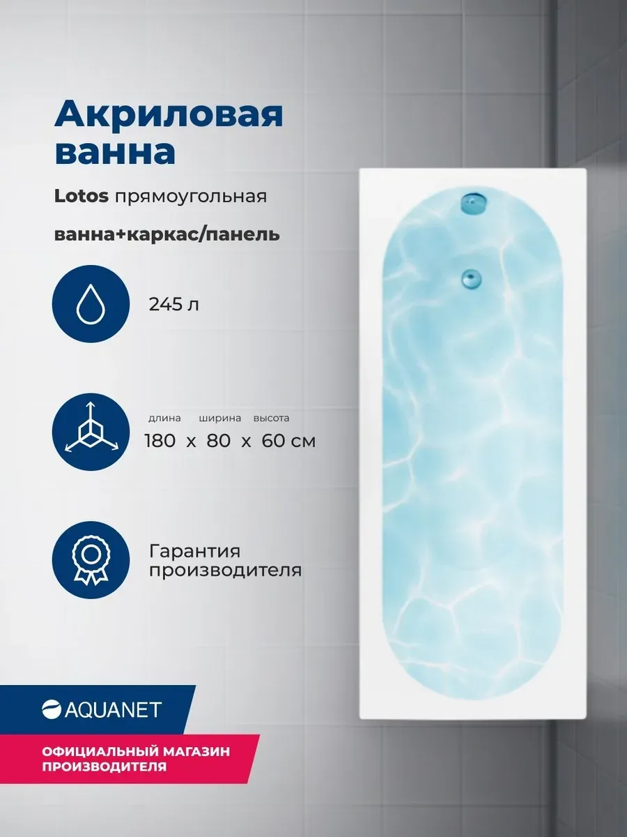 Акриловая ванна Aquanet Lotos 347161 180x80 см с каркасом и фронтальной панелью купить