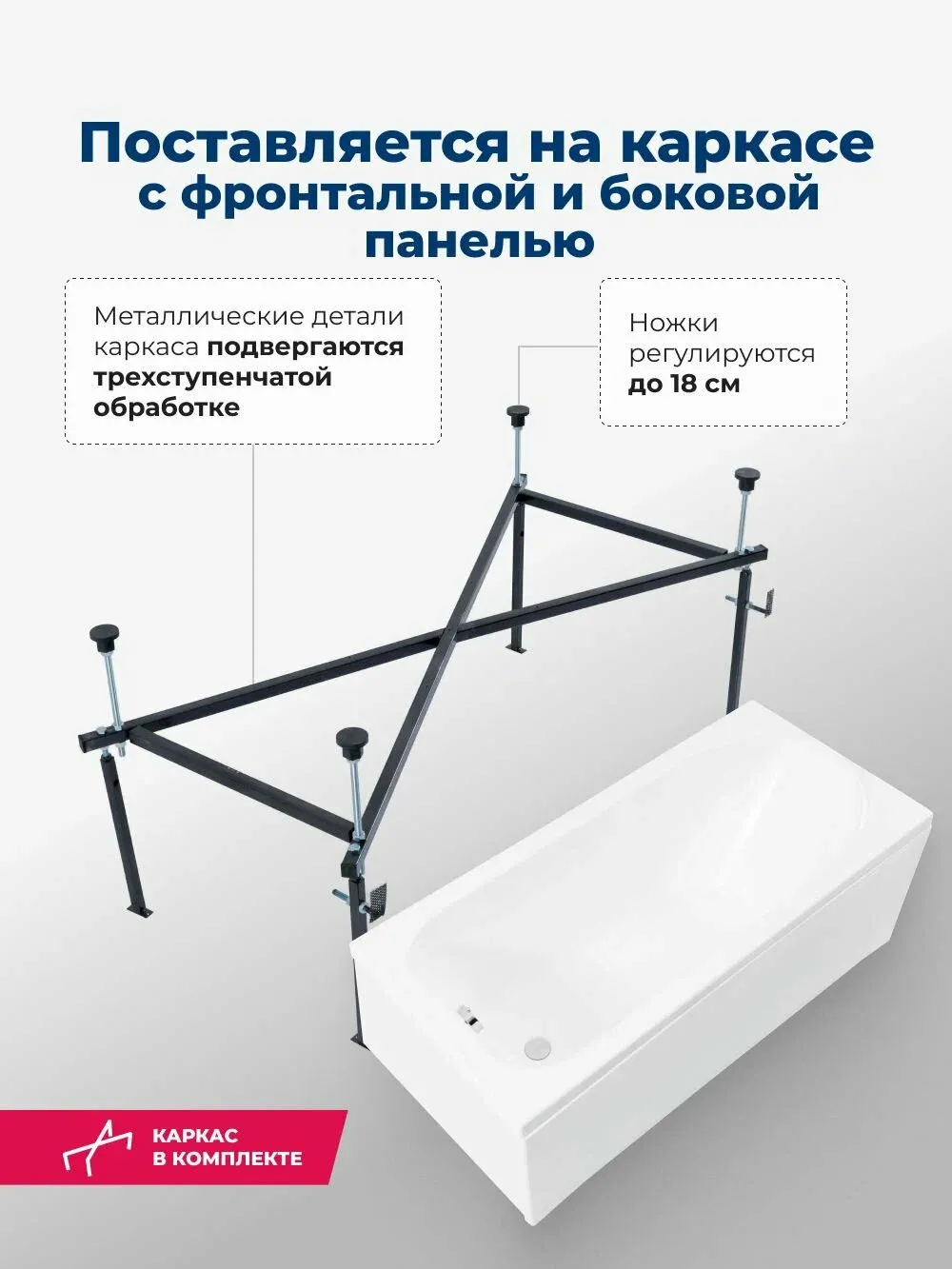 Акриловая ванна Aquanet Nord 347884 140x70 см с каркасом с боковой и фронтальной панелями