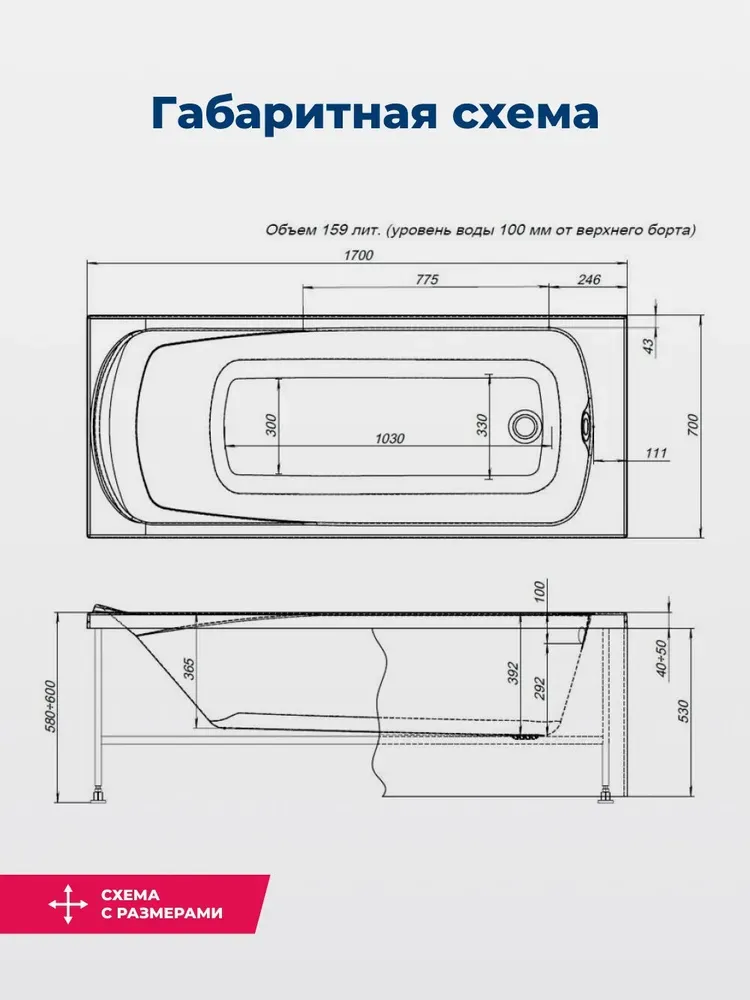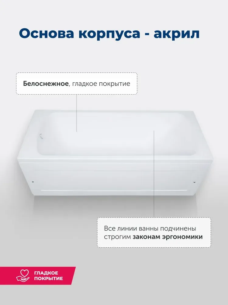 Обратите внимание, что это комплект: акриловая ванна, каркас и фронтальная панель. Ванна прямоуг... Подробнее