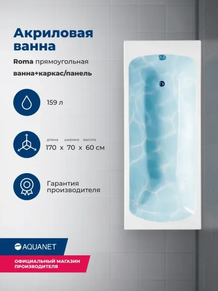 Акриловая ванна Aquanet Roma 347168 170x70 см с каркасом и фронтальной панелью купить