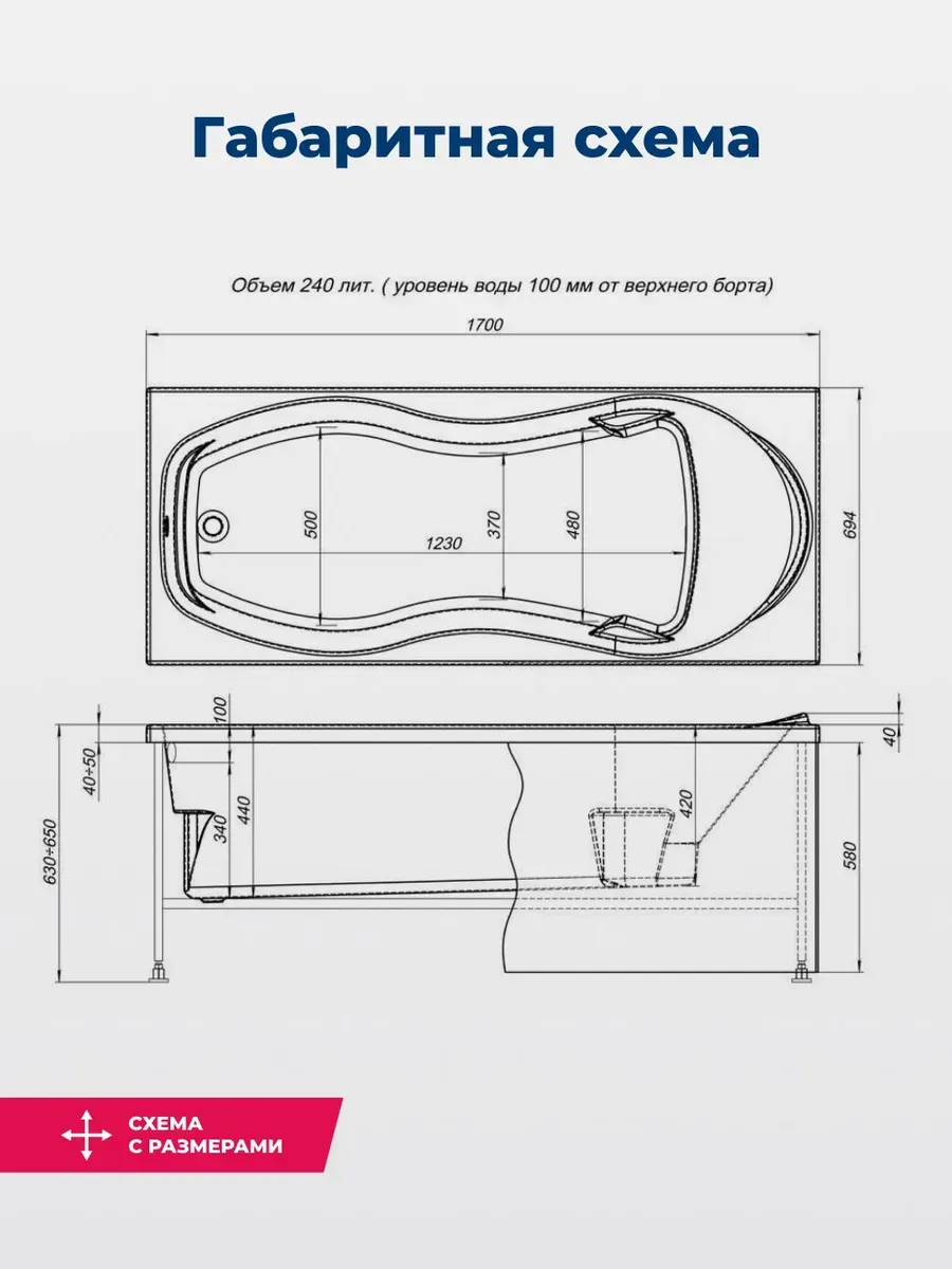 Акриловая ванна Aquanet Tessa 347171 170x70 см с каркасом и фронтальной панелью