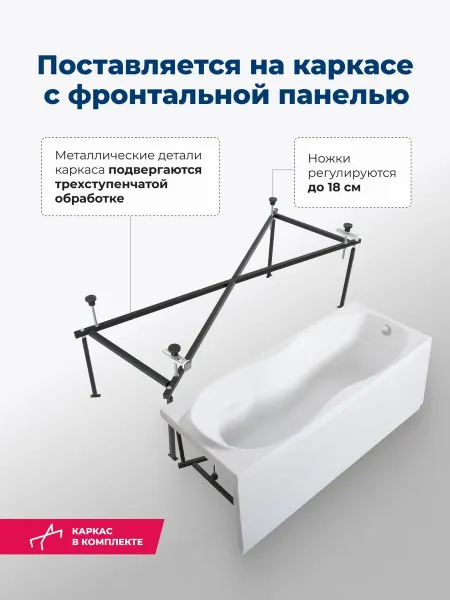 Акриловая ванна Aquanet Tessa 347171 170x70 см с каркасом и фронтальной панелью купить