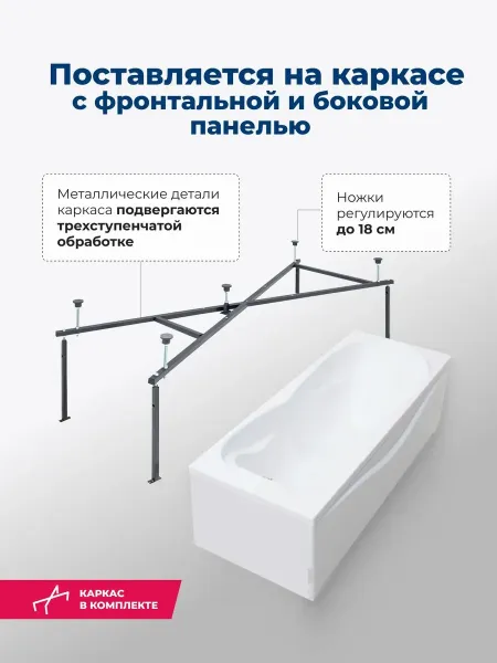 Акриловая ванна Aquanet Viola 347896 180x75 см с каркасом с боковой и фронтальной панелями купить