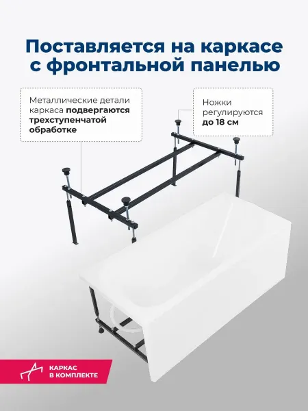 Акриловая ванна Aquanet West 347174 120x70 см с каркасом и фронтальной панелью