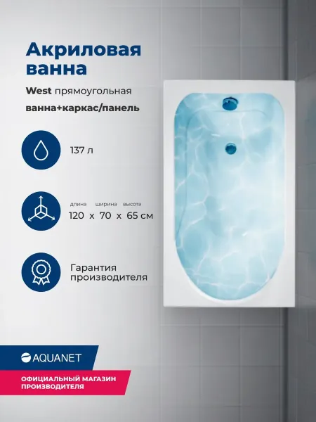Акриловая ванна Aquanet West 120x70 - прекрасный выбор модели эконом-класса. На первый взгляд он... Подробнее