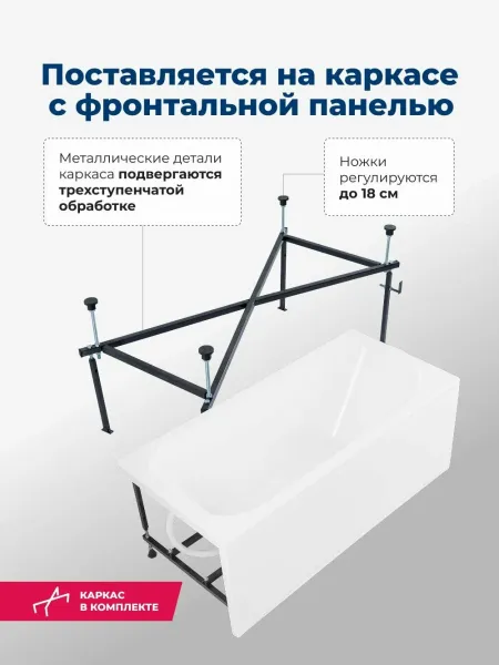 Акриловая ванна Aquanet West 347176 140x70 см с каркасом и фронтальной панелью