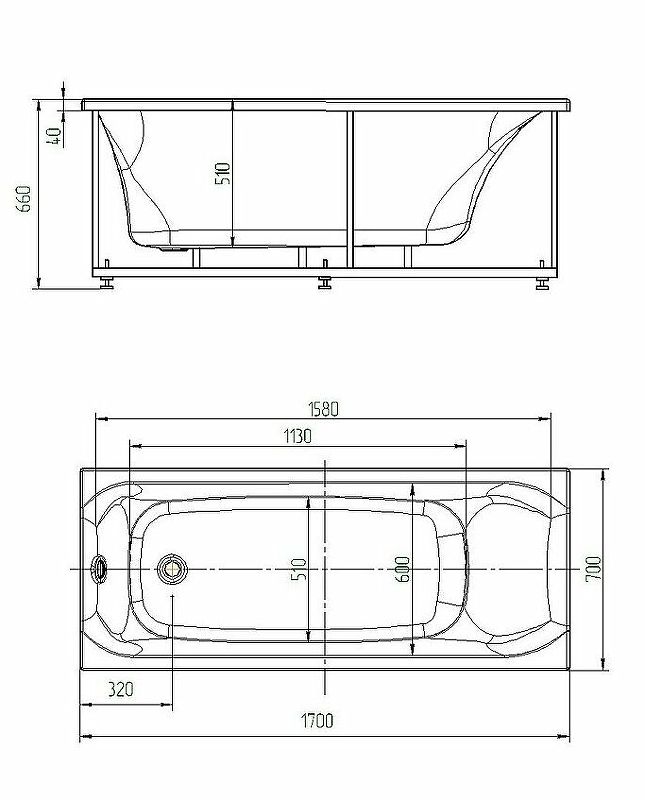 • Ванна устанавливается на каркас, который поставляется в комплекте