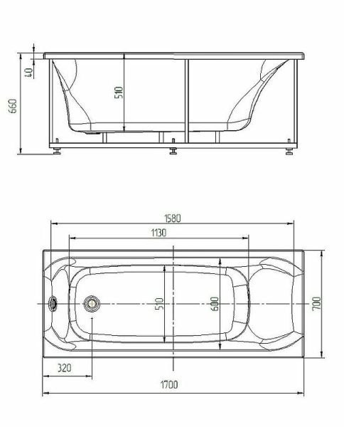• Внутр. размер ванны 138 см