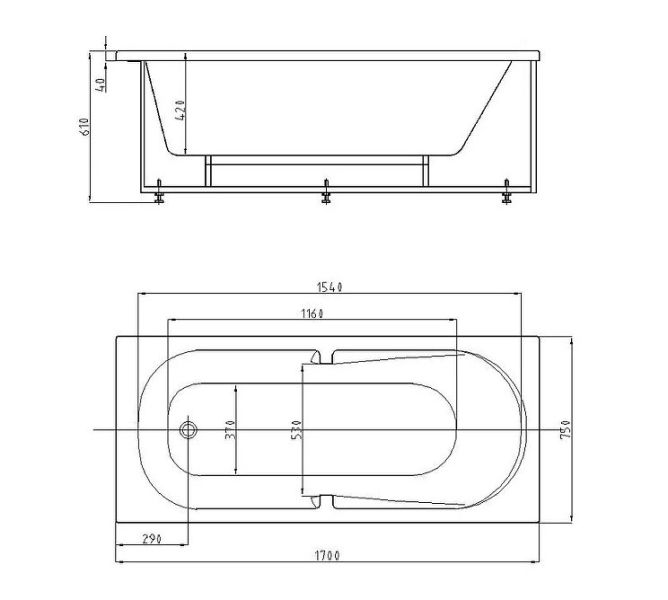 • Ванна устанавливается на каркас, который поставляется в комплекте