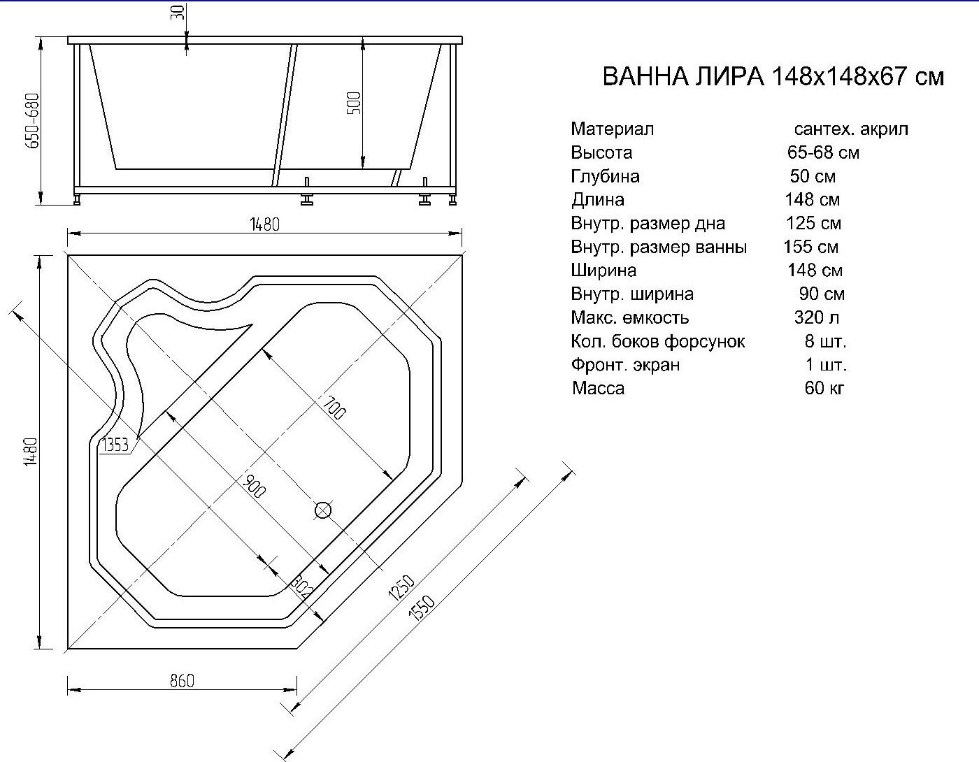 Четкие линии и строгие формы. Дизайн, созданный для того, чтобы ничего не отвлекало Вас от отдыха. Каждый ценит свое свободное время дорого. Вместе с акриловой угловой асимметричной ванной Лира Вы станете ценить его еще больше.Предлагаем обратить внимание на такую позицию в нашем каталоге, как ванна угловая 148х148 Лира. Несмотря на компактные размеры, она обладает строгими формами и четкими линиями. Ее дизайн настолько лаконичный и гармоничный, что ничто не отвлекает внимание от принятия водных процедур. Любое помещение, где установлена данная модель, станет одновременно уютным и практичным. Дизайн данной модели сочетается с любыми классическим интерьерами.В качестве материала для создания сантехники все шире используется 100% акриловый лист. Именно из этого материала изготовлена угловая ванна 148х148 Лира, которая предлагается в нашем каталоге, который позволяет длительное время сохранять привлекательный внешний вид. Все элементы подключения после монтажа изделия скрываются под декоративным экраном.В нашем каталоге легко и быстро вы сможете подобрать необходимое вам изделие указав необходимые параметры поиска. После выбора нужного вам изделия вы можете приобрести акриловую угловую ванну 148х148 Лира, которая идеально впишется в ваш архитектурный проект. Осуществить заказ вы можете в любом городе Российской федерации оформив доставку или самовывоз по вашему усмотрению.