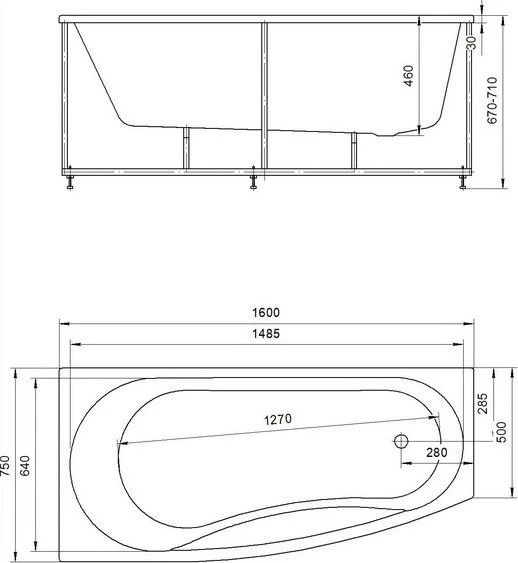 - Ванна устанавливается на каркас, который поставляется в комплекте