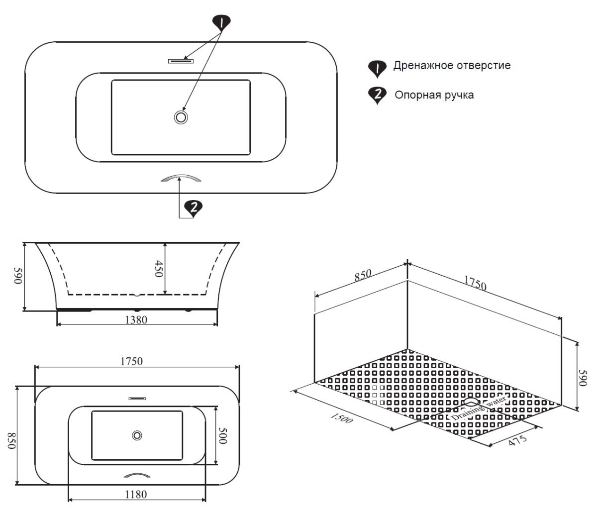 Артикул краткий:AZМ706Форма:прямоугольнаяОриентация:равносторонняяСтрана:КитайВид установки:отдельностоящаяМатериал:акрилГарантия:5 летРасположение перелива:по центру