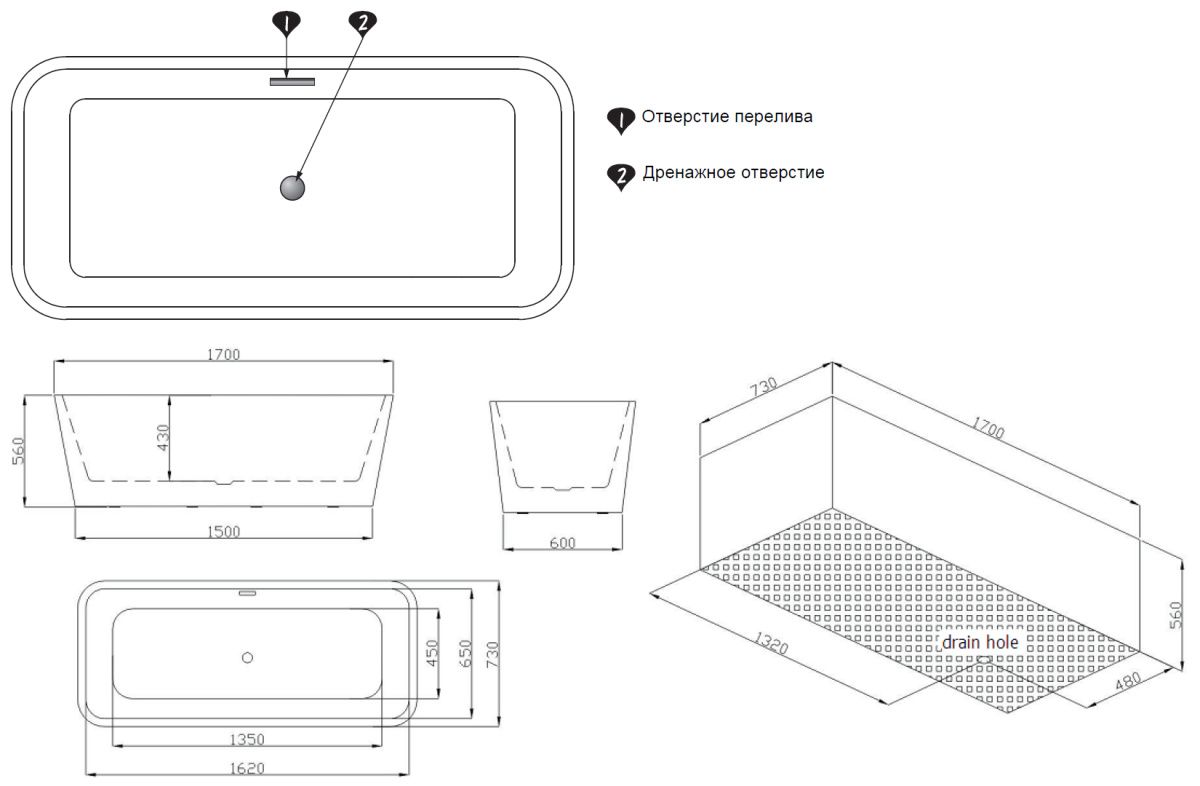 Артикул краткий:AZM702SФорма:прямоугольнаяОриентация:равносторонняяСтрана:КитайВид установки:отдельностоящаяМатериал:акрилГарантия:5 летРасположение перелива:по центру