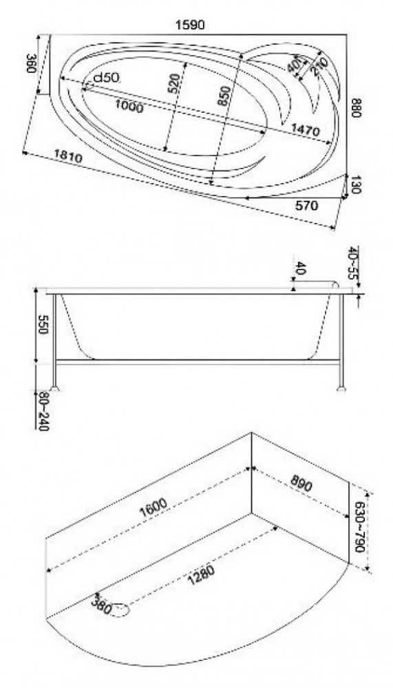 - Размеры: 1600 х 880 мм