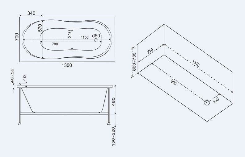 Состав поставки: Ванна, Каркас