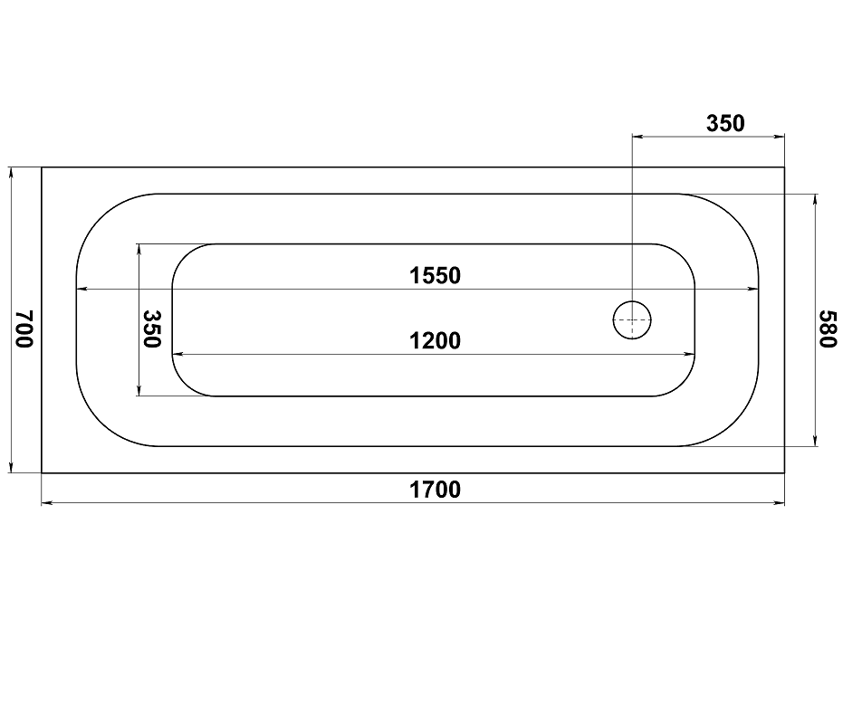 Акриловая ванна Bas Лира З 00135 белая 170х70 см