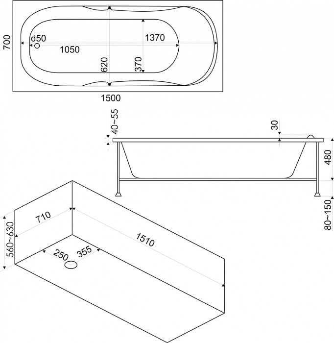 Акриловая ванна Bas Рио З 00069 150 x 70 см