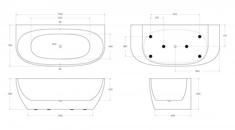 Акриловая ванна BelBagno BB83-1700-W0 170x80 см