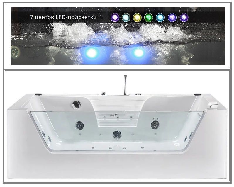 Акриловая гидромассажная ванна (джакузи) Ceruttispa C-477-18A (1800х850х580), 6 гидромассажных форсунок в зоне спины, 2 в боковой зоне, 8 аэромассажных форсунок, смеситель, 2 подголовника, хромотерапия, с датчиком сухого пуска.Размер:1800х850х580 ммОснащение:Гидромассажные форсунки : 6 гидромассажных форсунок в зоне спины +2 в боковой зоне
