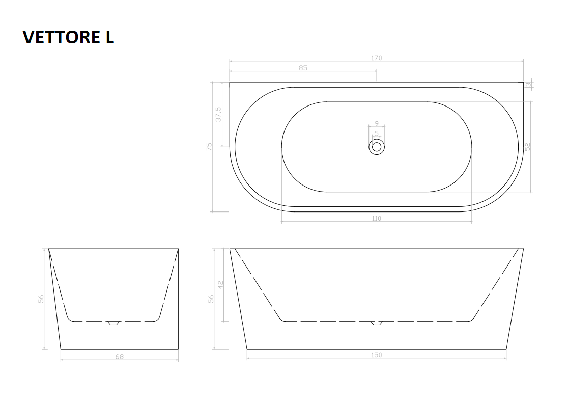 Акриловая ванна Cerutti SPA VETTORE L CT9345 170x75см