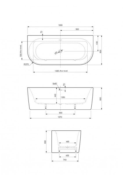 Акриловая ванна CEZARES METAURO-INT-Wall-180-80-60-G-W-MATT