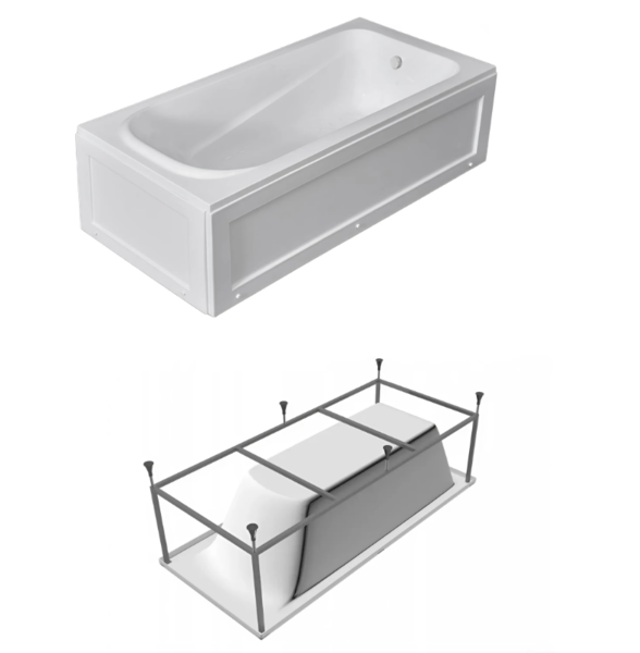 Ванная устанавливается на жесткий сварной каркас с регулируемыми ножками до 20 мм. Металлические детали каркаса подвергаются трехступенчатой обработке