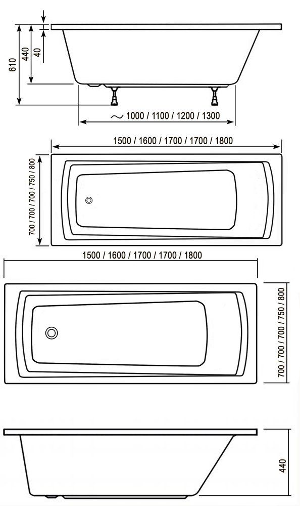 Допустимые отклонения по длине и ширине ванны составляют ± 5 ммВанну можно дополнить шторками для ванны CVS2, VS2, VS3, VS5, PVS1, NVS1, BVS1, BVS2 или дверьми для ванны AVDP3. К ванне можно докупить переднюю и боковую панели. Ванну необходимо использовать со сточным комплектом (длина 570 мм).