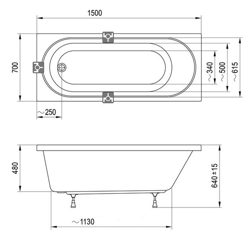 Допустимые отклонения по длине и ширине ванны составляют ± 5 мм