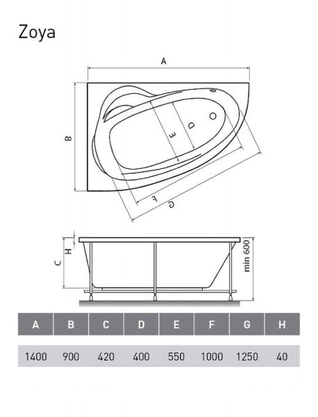 Акриловая ванна Relisan Zoya 140x90 L Гл000001247 без гидромассажа