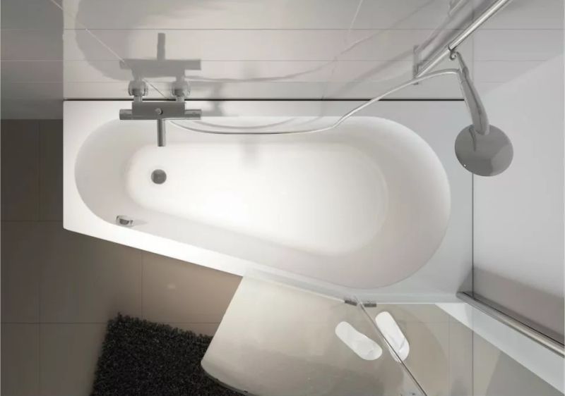 Линейка RIHO Delta - комбинированное решение "ванна-душ", разработанное так, чтобы в широкой части ванны можно было удобно принимать душ и комфортно лежать.