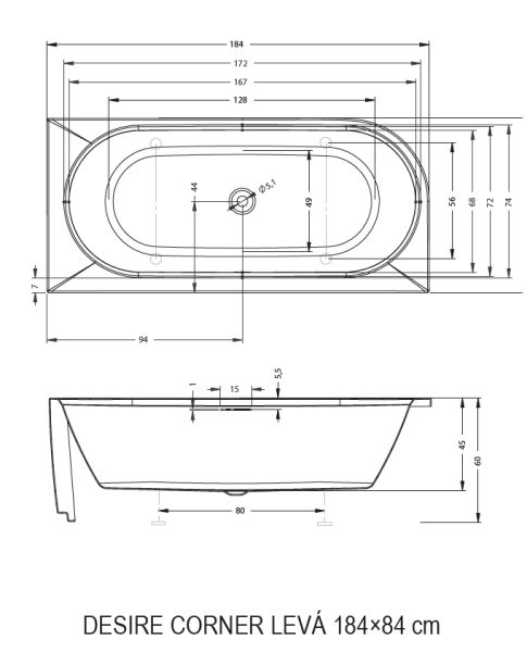Акриловая ванна Riho Desire Corner Glossy Sparkle System B088003005 L 184x84см с аэромассажем белый