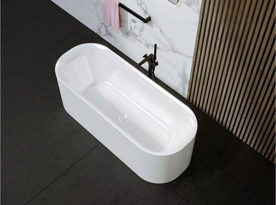 Белая глянцевая ванна FALL поставляется в стандартной комплектации с хромированным сливом переливом