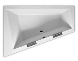 ?Асимметричная ванна RIHO Doppio 180x130 L Plug & Play из глянцевого белого акрила, со скошенными краями представляет собой полностью собранную на заводе конструкцию.
