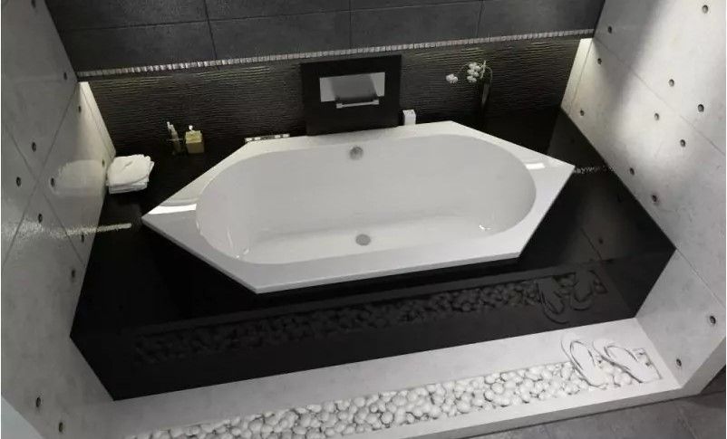 Ванна имеет оригинальную шестиугольную форму с большим внутренним объёмом, позволяющим принимать комфортные водные процедуры.